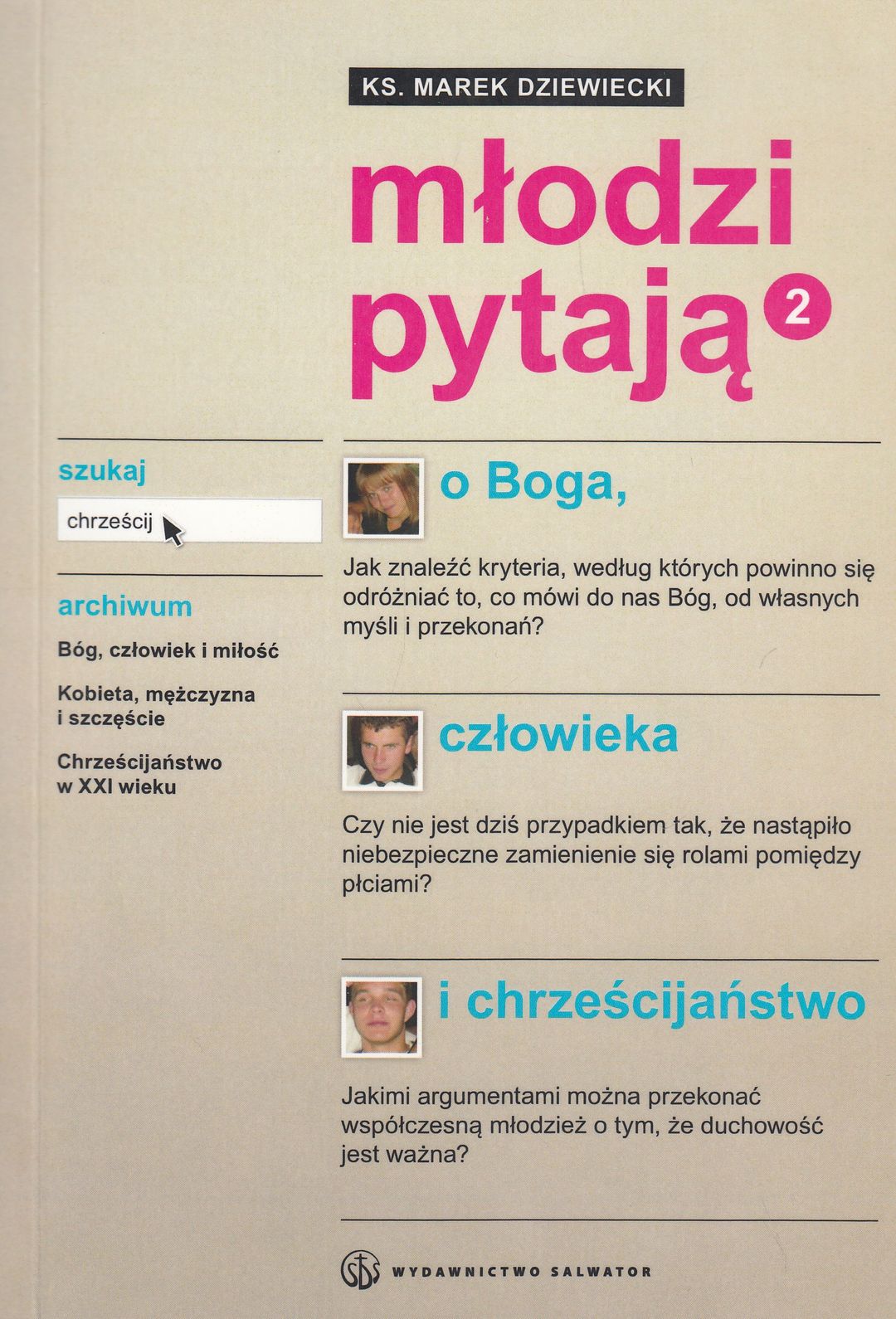 Odpowiedzi na dziesiątki pytań, jakie młodzi ludzie postawili w rozmowach księżom i katechetom. Ksiązka adresowana jest zarówno do młodzieży, jak i dorosłych, którzy pragną przybliżać swym podopiecznym wartości chrześcijańskie.